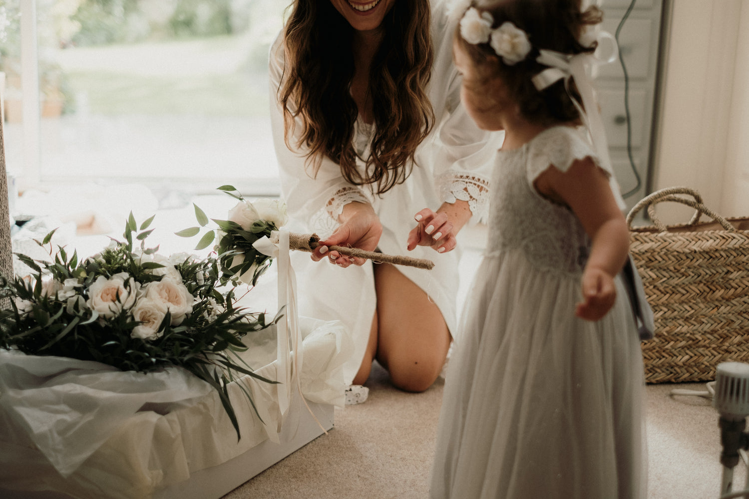 Providing the right options for younger members of the bridal party crew is vital. For this scheme we opted for wands with beautiful trailing threads. Other alternatives would be a smaller bouquet and fuller flower crowns. Tiny hands love to wave these wands around and spread their ethereal fairy like joy.