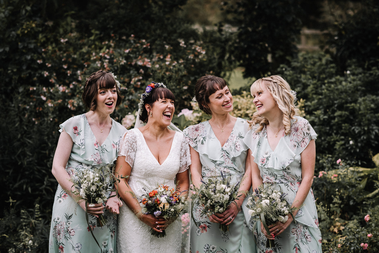 Garden gathered flowers for a garden party look. These bridesmaid dresses were seriously pretty and really brought the theme together. We simplified the colour ways in these bouquets to compliment the dresses and were really pleased with the result.