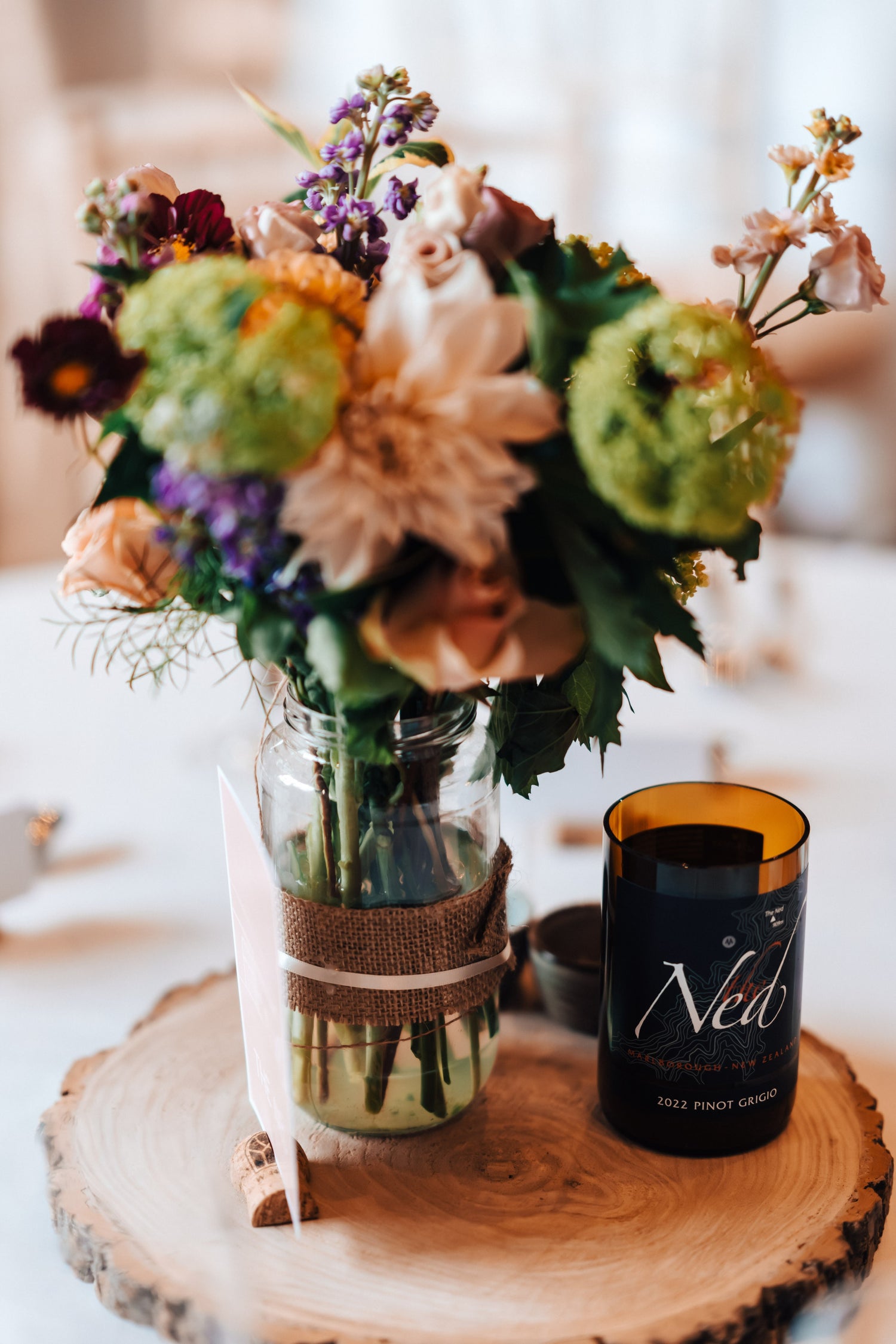 Sometimes a simple arrangement is all it takes to lift the surroundings and create beauty on every table. These large jam jars willed with seasonal gems were just the ticket. Our homegrown cosmos and dahlia taking centre stage. If you haven't tried Ned I would highly recommend!