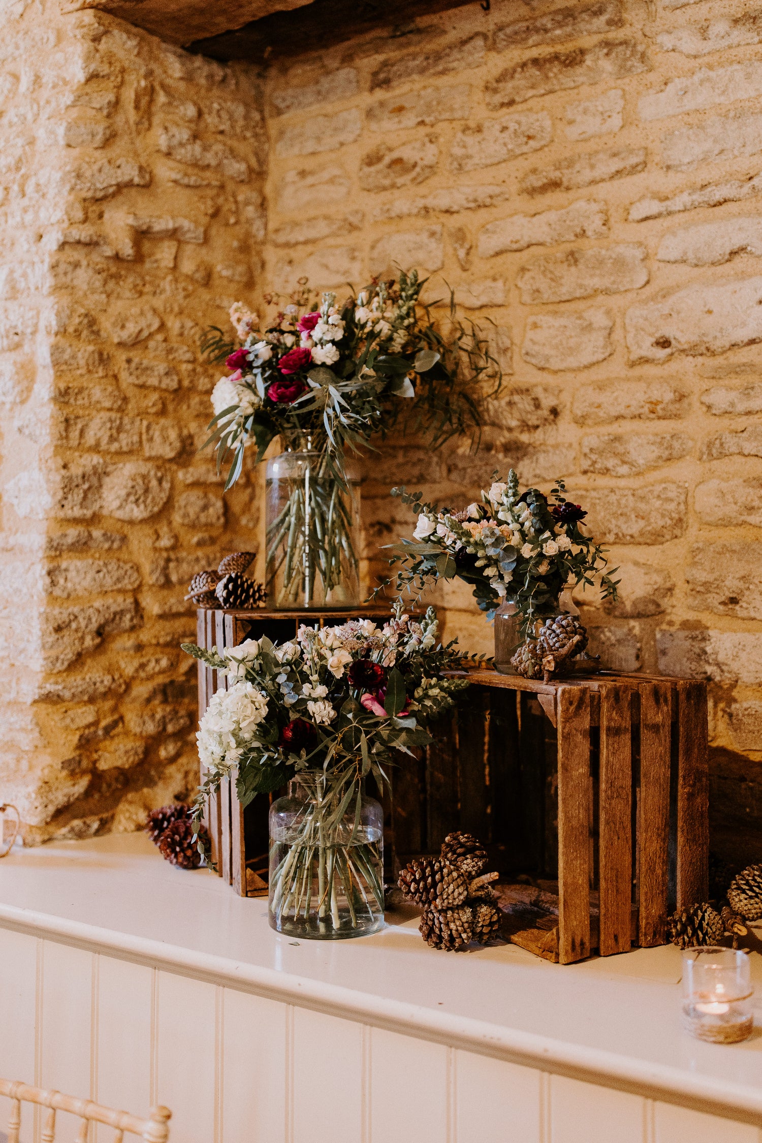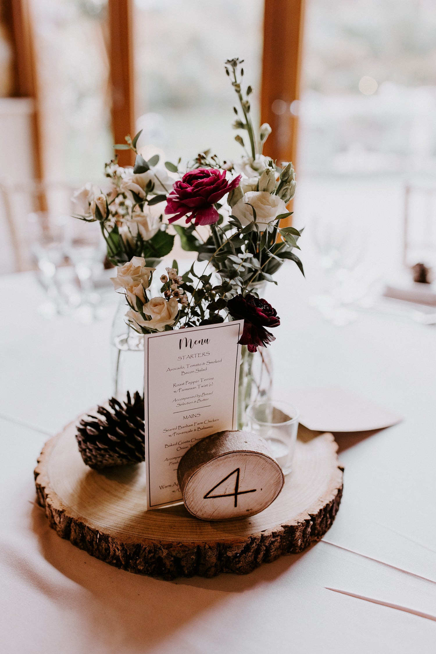 everything together. Trios of blooms adorned the tables with our wooden slices used to break up the space. The scent of winter foliage amongst the stem vases was divine!