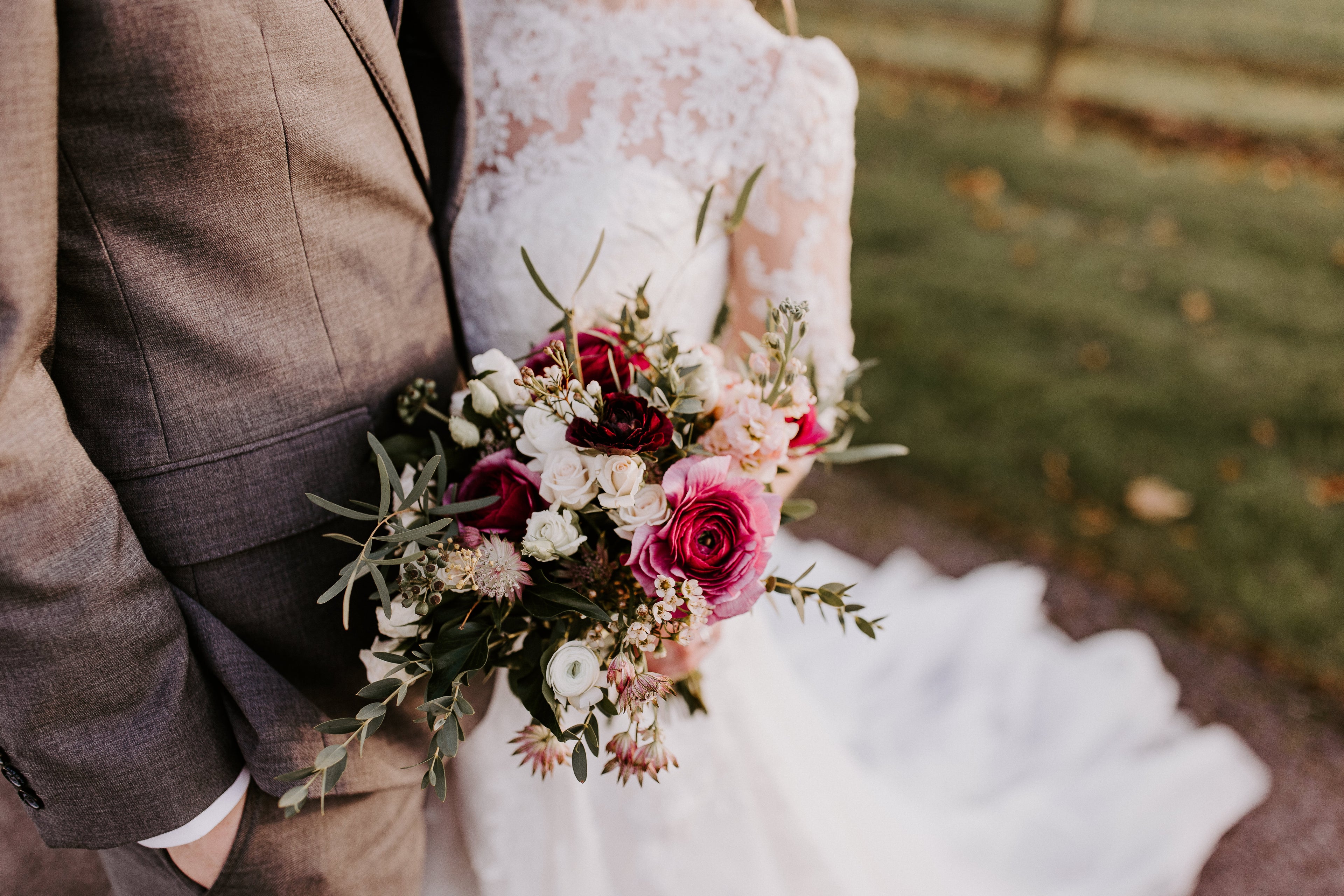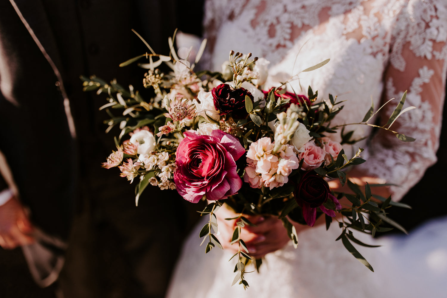 deep burgundy ranunculas with blush stocks and wintery hues of wax flower and astrantia. The overall affect was striking and extremely photogenic set against